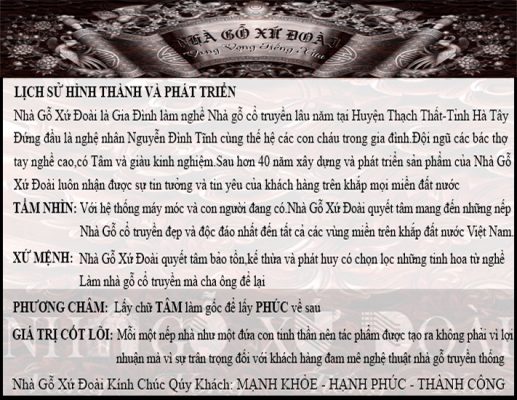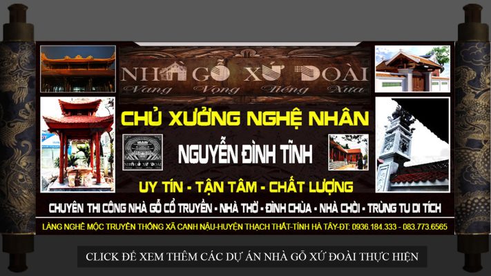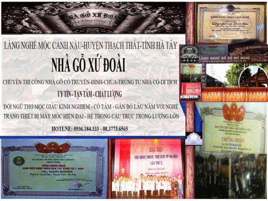 NHÀ GỖ XỨ ĐOÀI kế thừa và phát huy truyền thống những giá trị của làng nghề truyền thống Xã Canh Nậu, Huyện Thạch Thất. Với hơn 40 năm trong kinh nghiệm lĩnh vực thiết kế, sản xuất nhà gỗ truyền thống: Nhà ở dân gian, nhà gỗ truyền thống (nhà 5 gian, nhà 3 gian, nhà kẻ truyền, nhà ba gian hai chái, nhà thờ họ) , Đình, Chùa vv… . Đặc biệt với đội ngũ thợ tay nghề cao, khéo léo, dày dặn kinh nghiệm, Tinh Xảo Từng Chi Tiết..